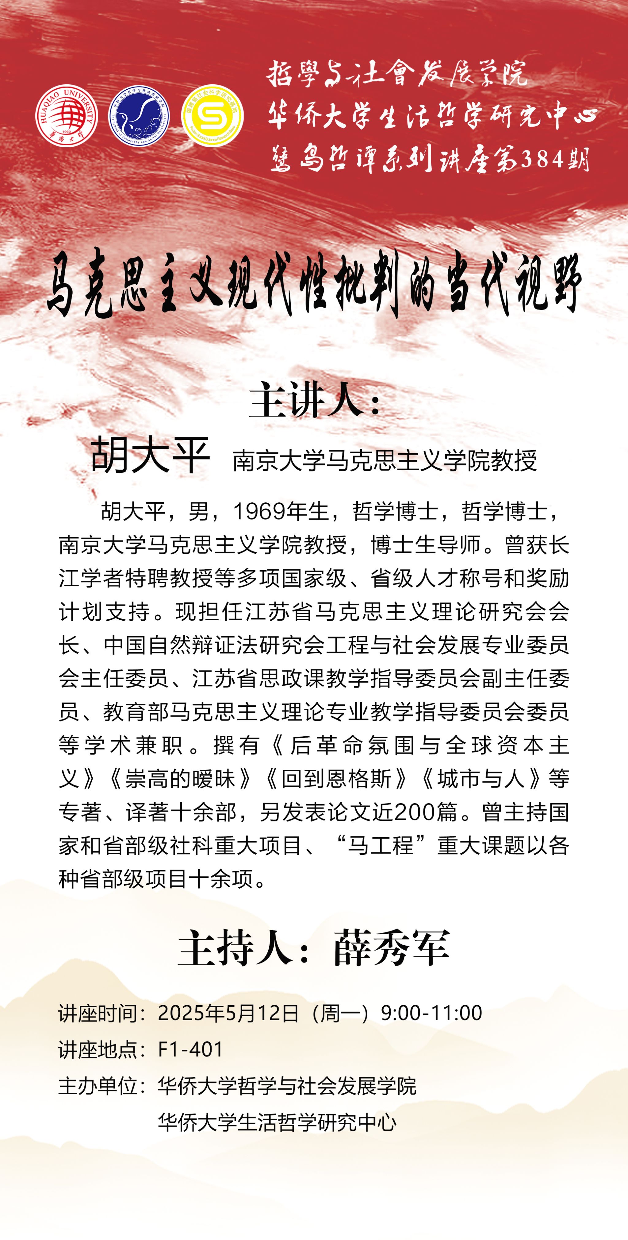 【讲座预告】哲社学院鹭岛哲谭系列讲座第384期之马克思主义现代性批判的当代视野