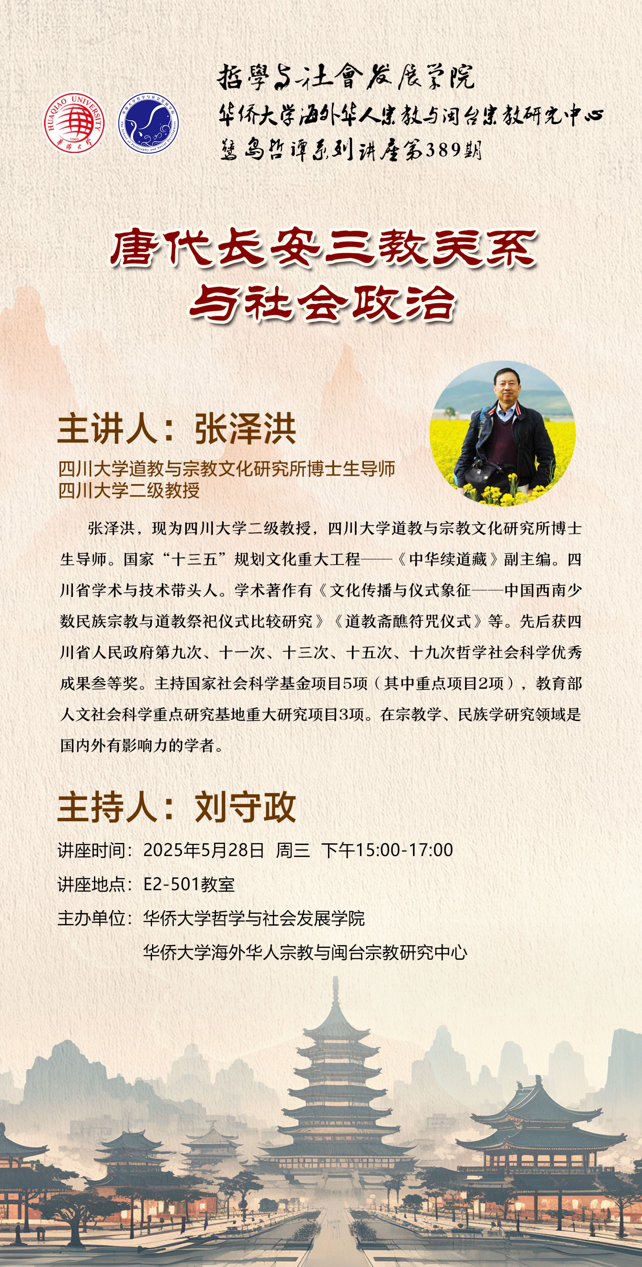【讲座预告】哲社学院鹭岛哲谭系列讲座第389期之唐代长安三教关系与社会政治
