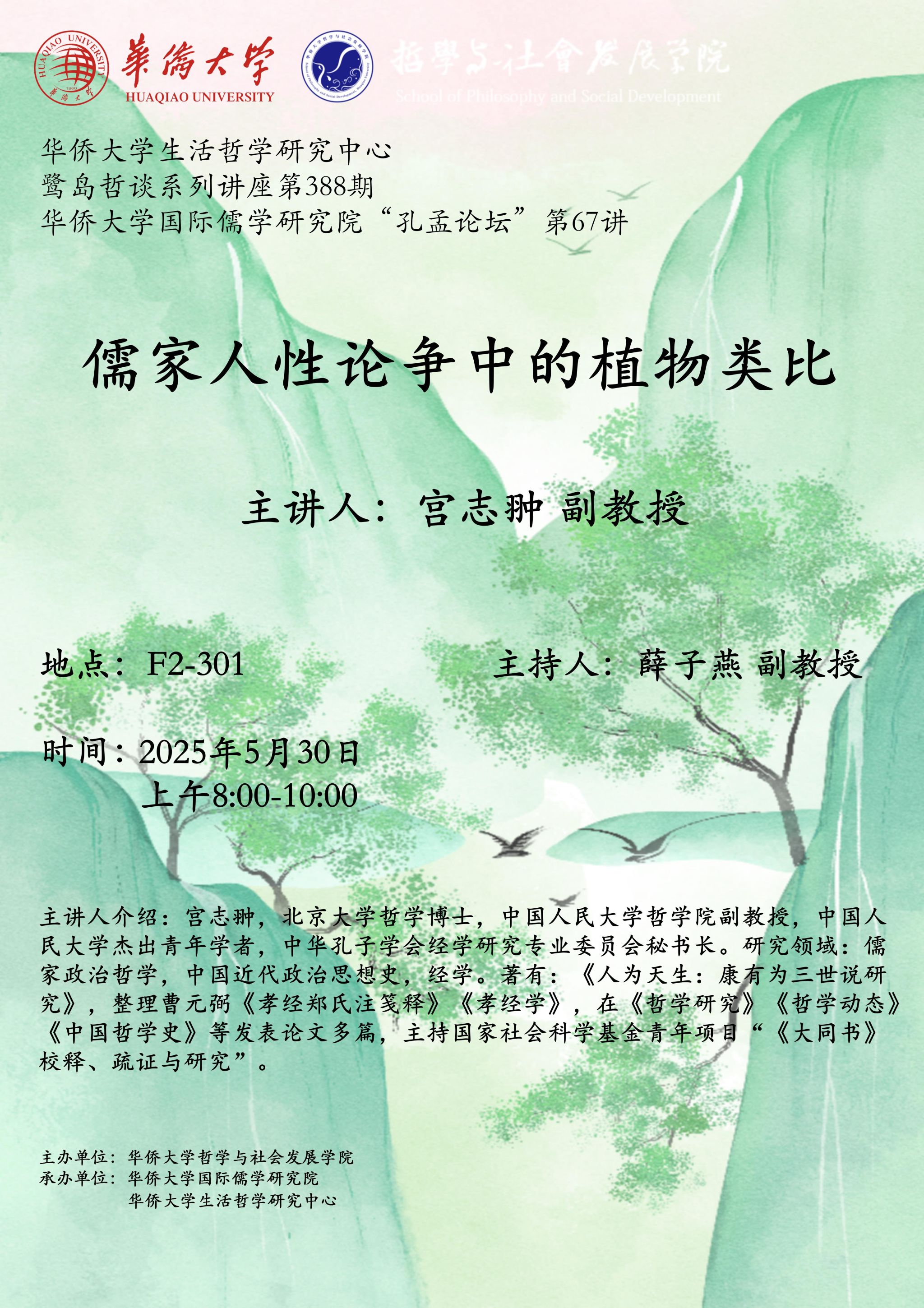 【讲座预告】哲社学院鹭岛哲谭系列讲座第388期之儒家人性论争中的植物类比