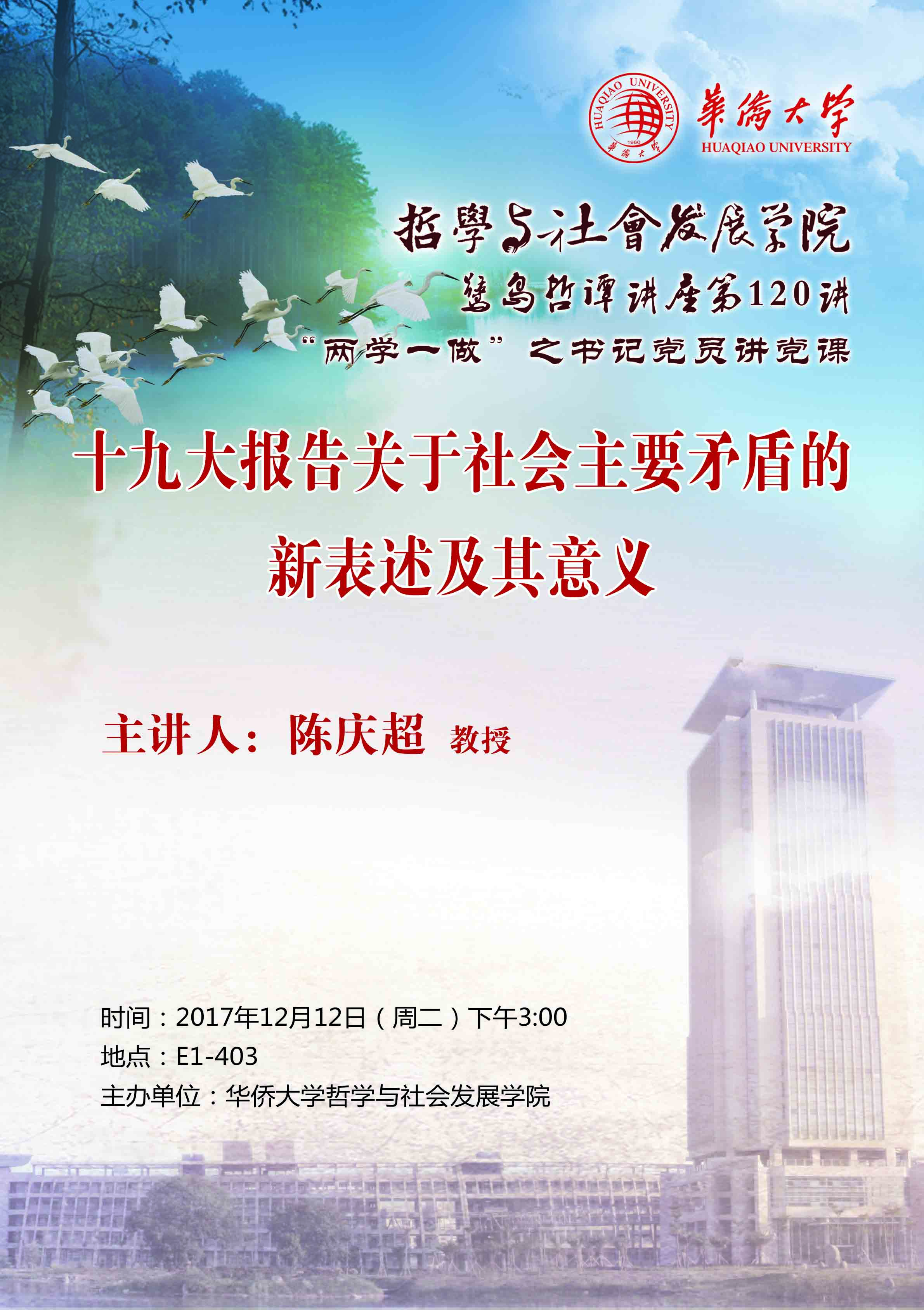 【讲座预告】鹭岛哲谭第120期