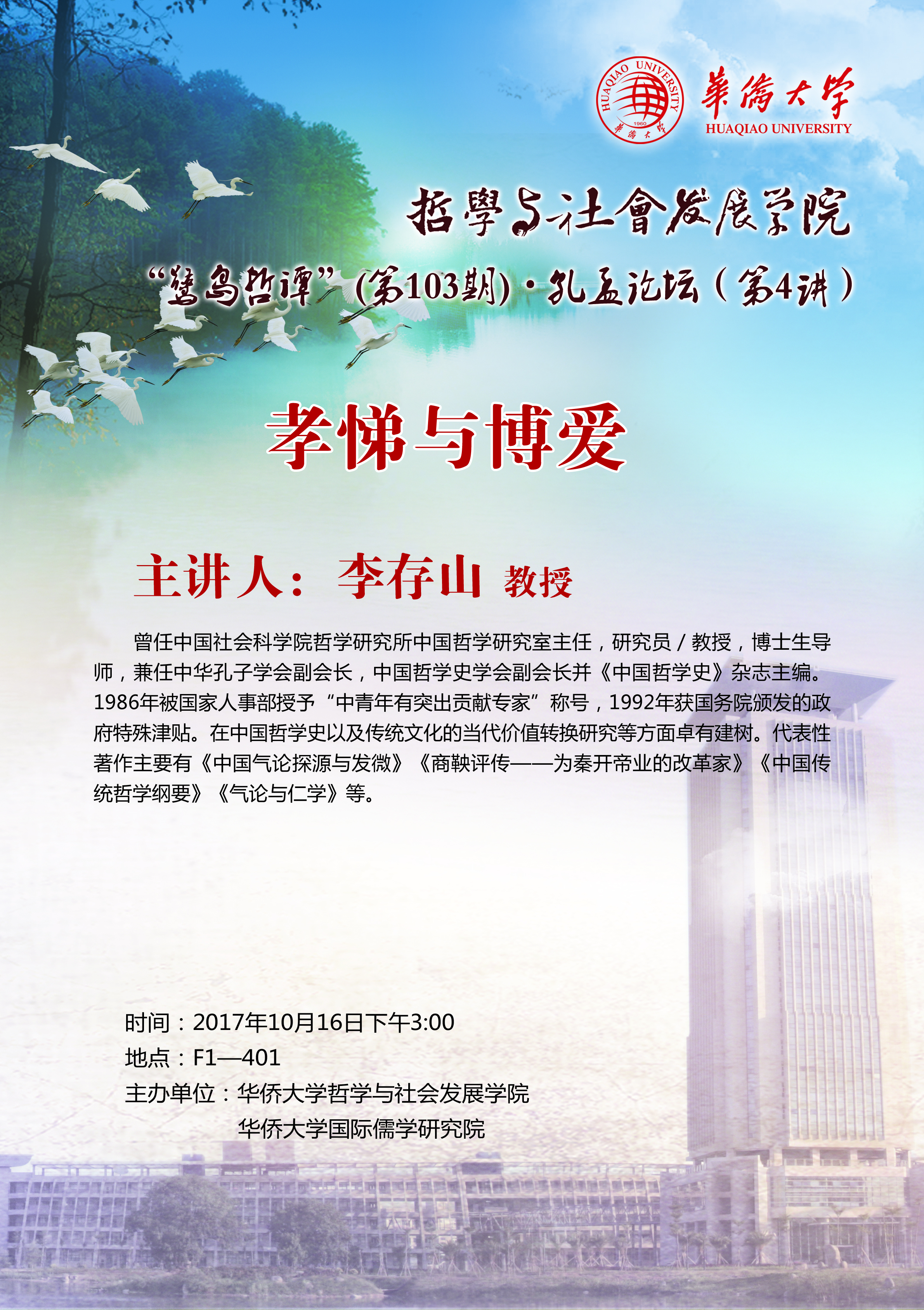 【讲座预告】鹭岛哲谭(第103讲)·孔孟论坛(第4讲)