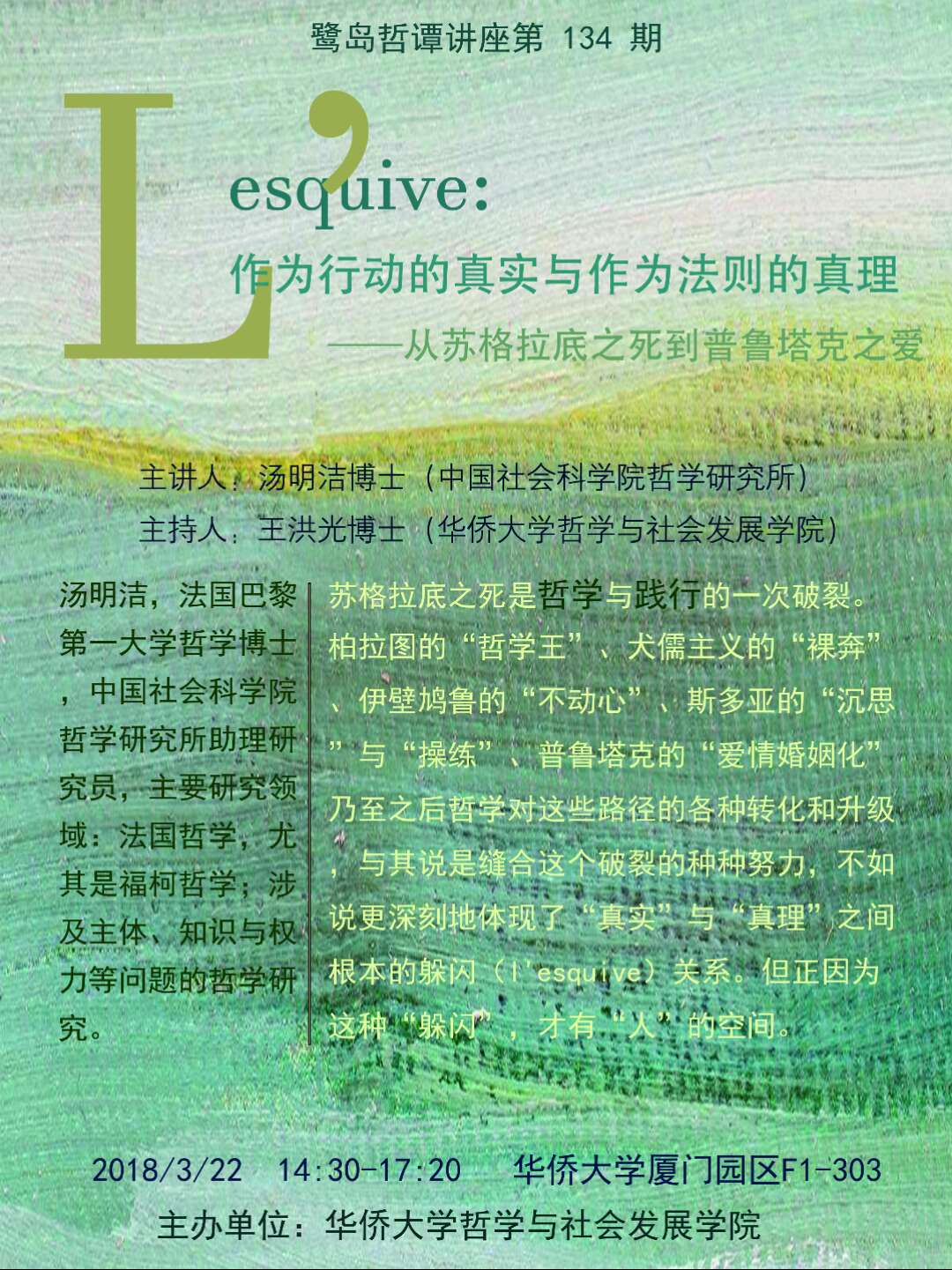 【讲座预告】鹭岛哲谭第134讲