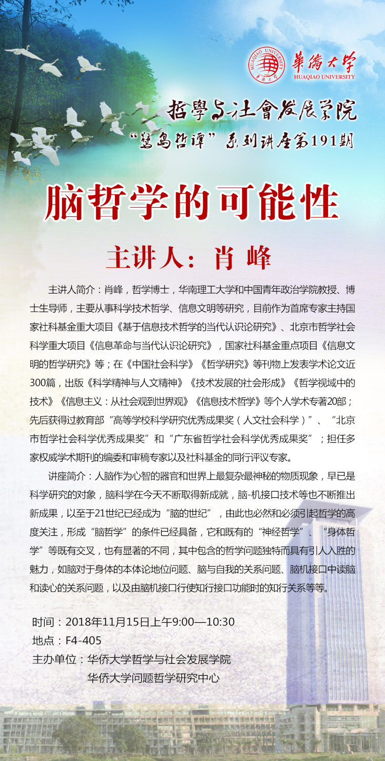 【讲座预告】鹭岛哲谭第191讲