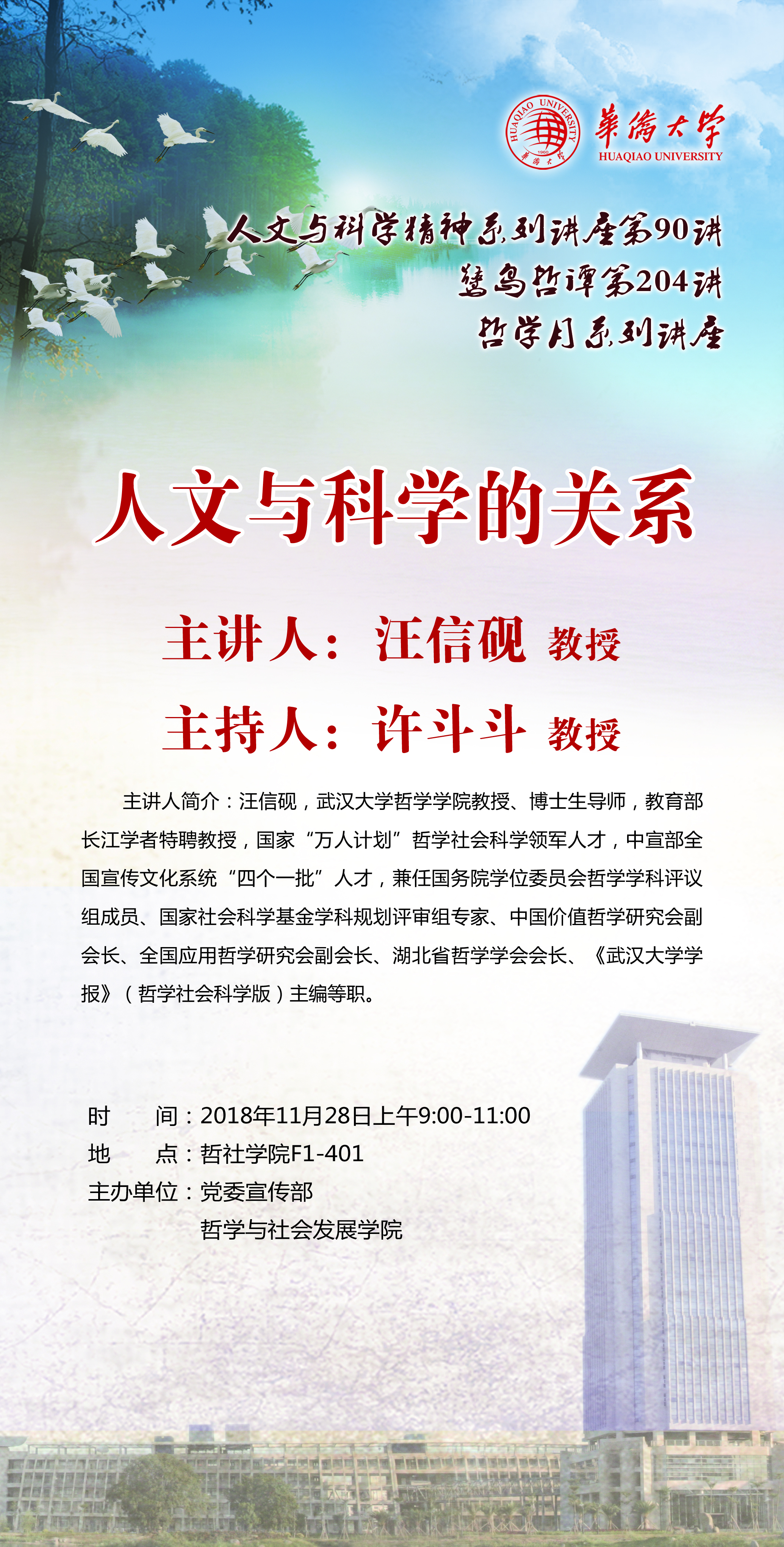 【讲座预告】人文与科学精神系列讲座第90讲、鹭岛哲谭第204讲
