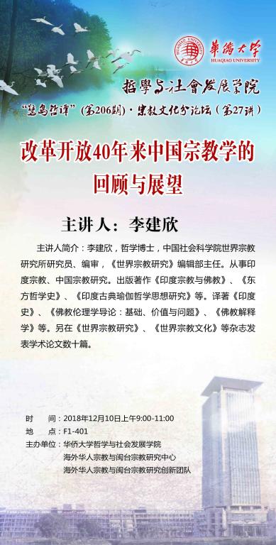 【讲座预告】鹭岛哲谭第206讲、宗教文化分论坛第27讲