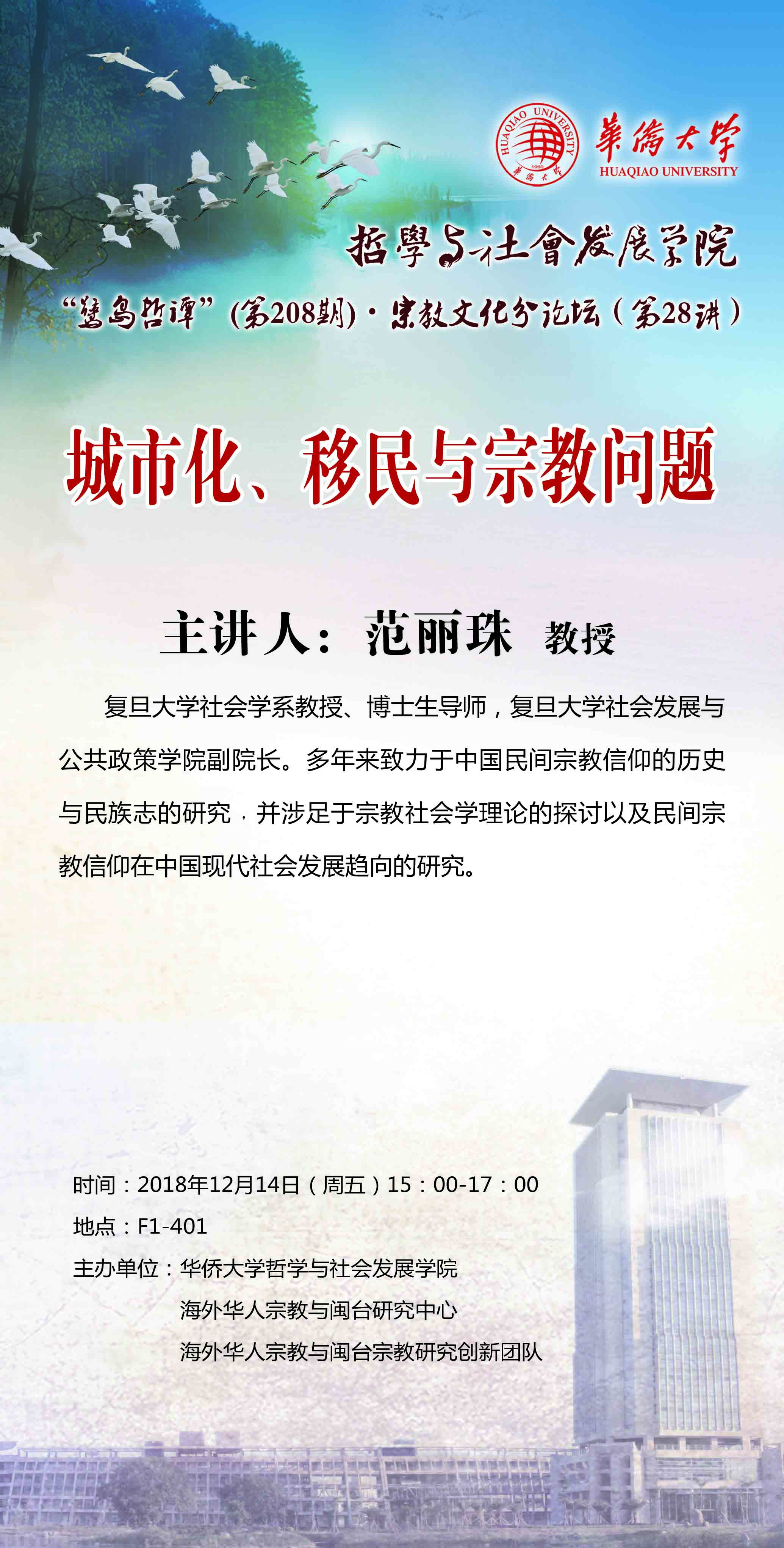【讲座预告】鹭岛哲谭第208讲、宗教文化分论坛第28讲