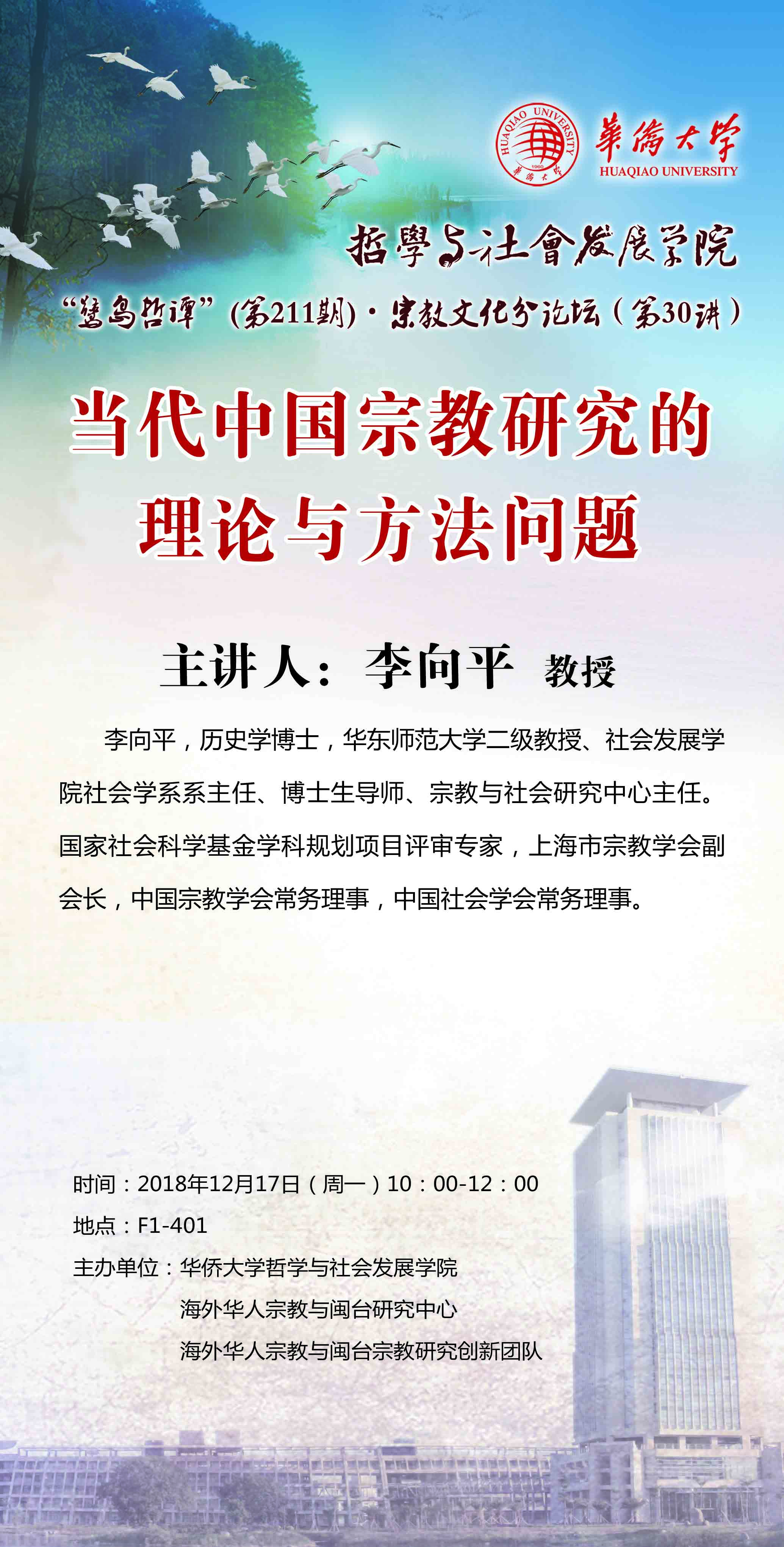 【讲座预告】鹭岛哲谭第211讲、宗教文化分论坛第30讲