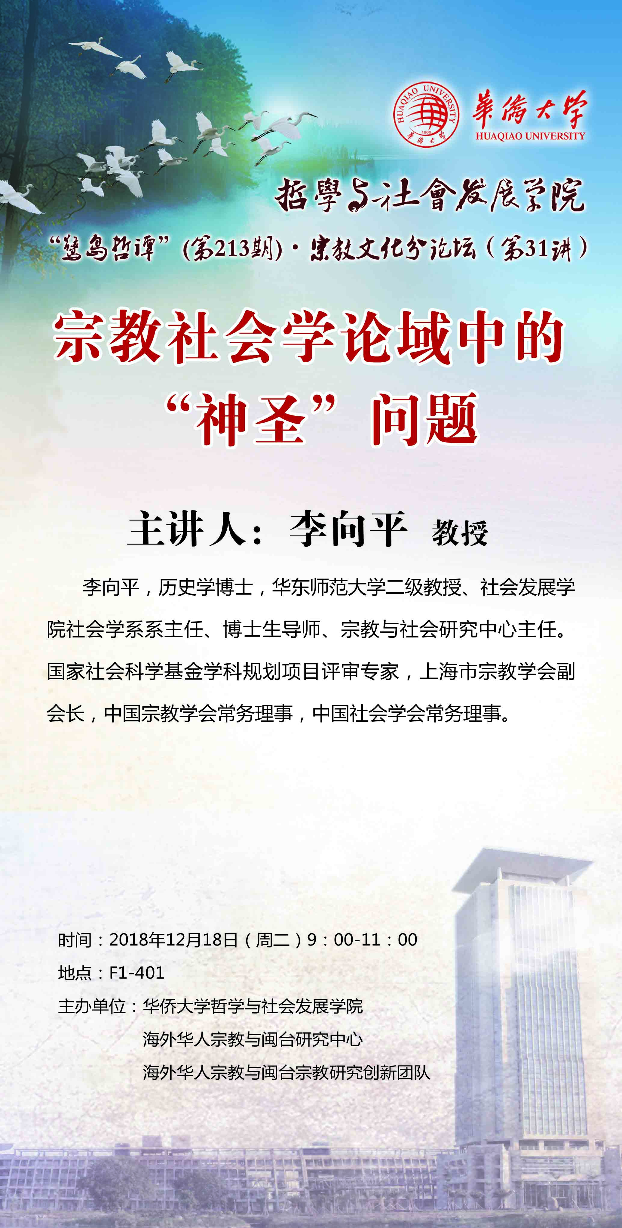 【讲座预告】鹭岛哲谭第213讲、宗教文化分论坛第31讲