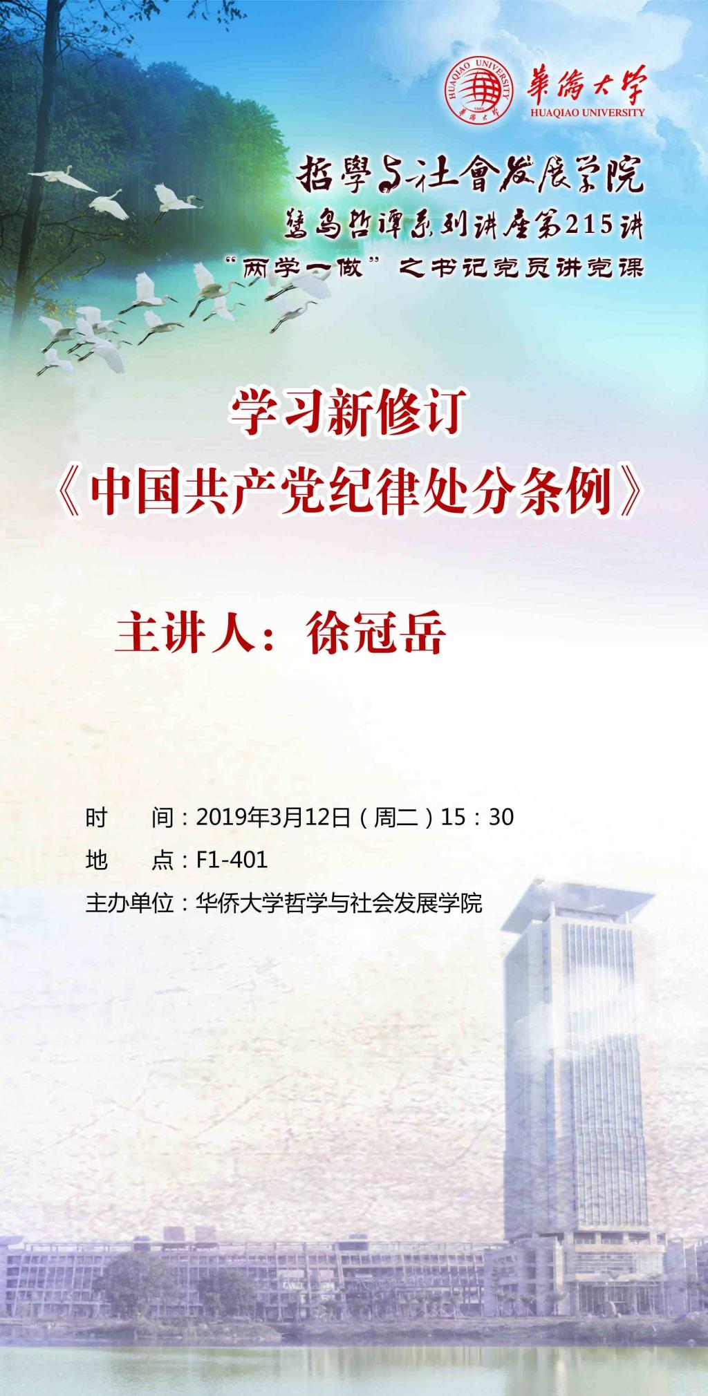 【讲座预告】鹭岛哲谭第215讲、“两学一做”之书记讲党课