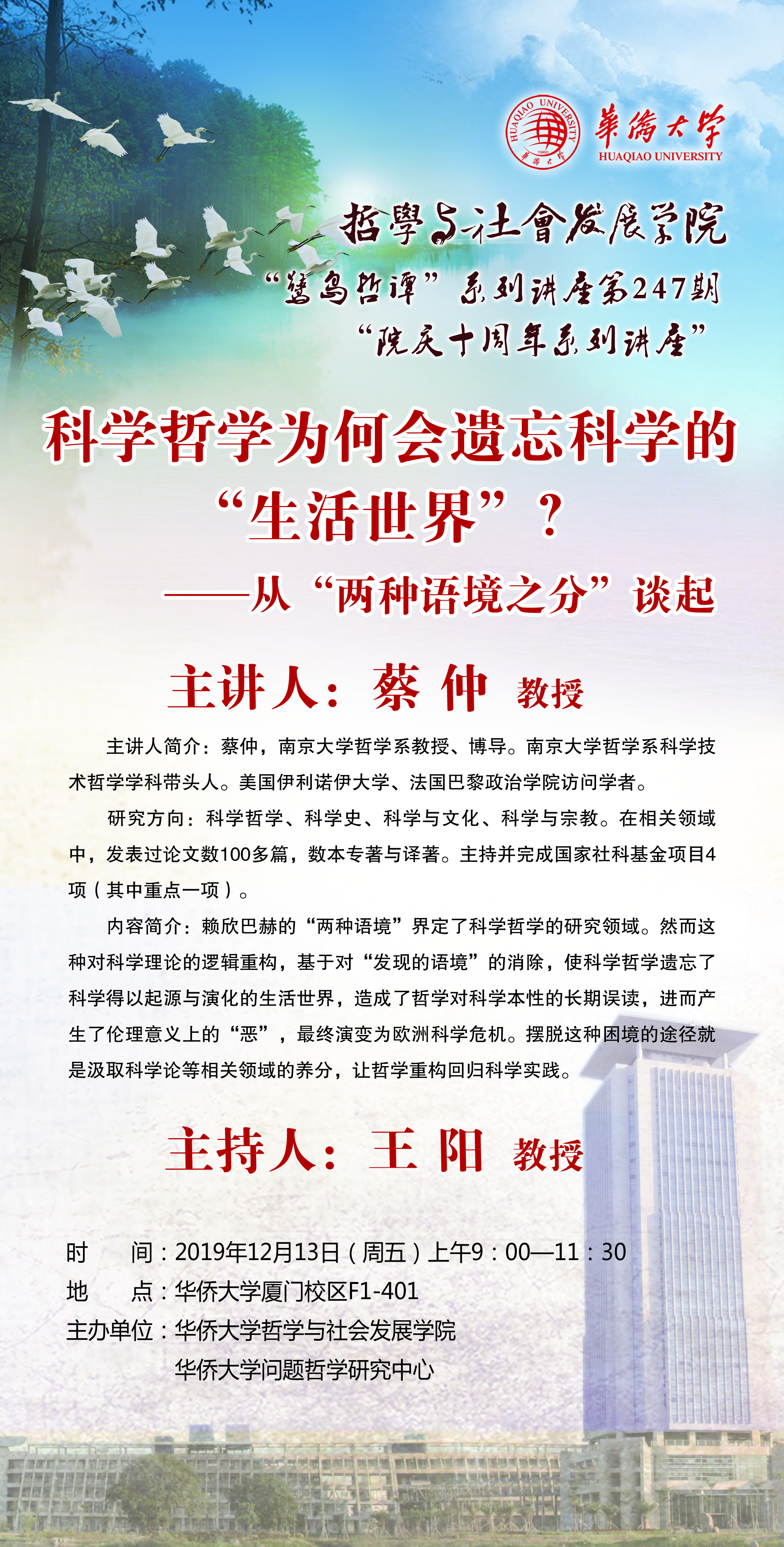 【讲座预告】鹭岛哲谭系列讲座第247期