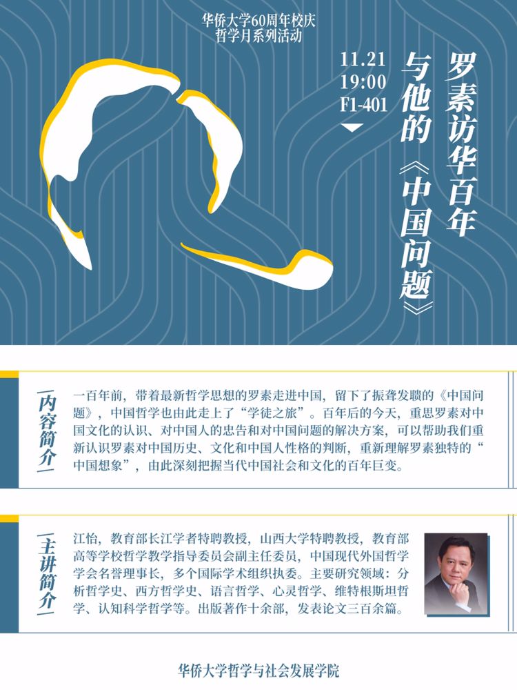 【讲座预告】江怡教授讲授“罗素访华百年与他的《中国问题》”