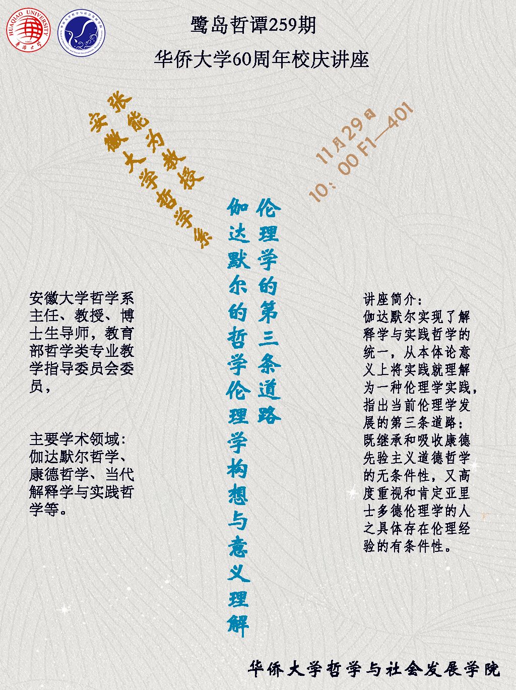 【讲座预告】鹭岛哲谭第259期之永利集团60周年校庆讲座