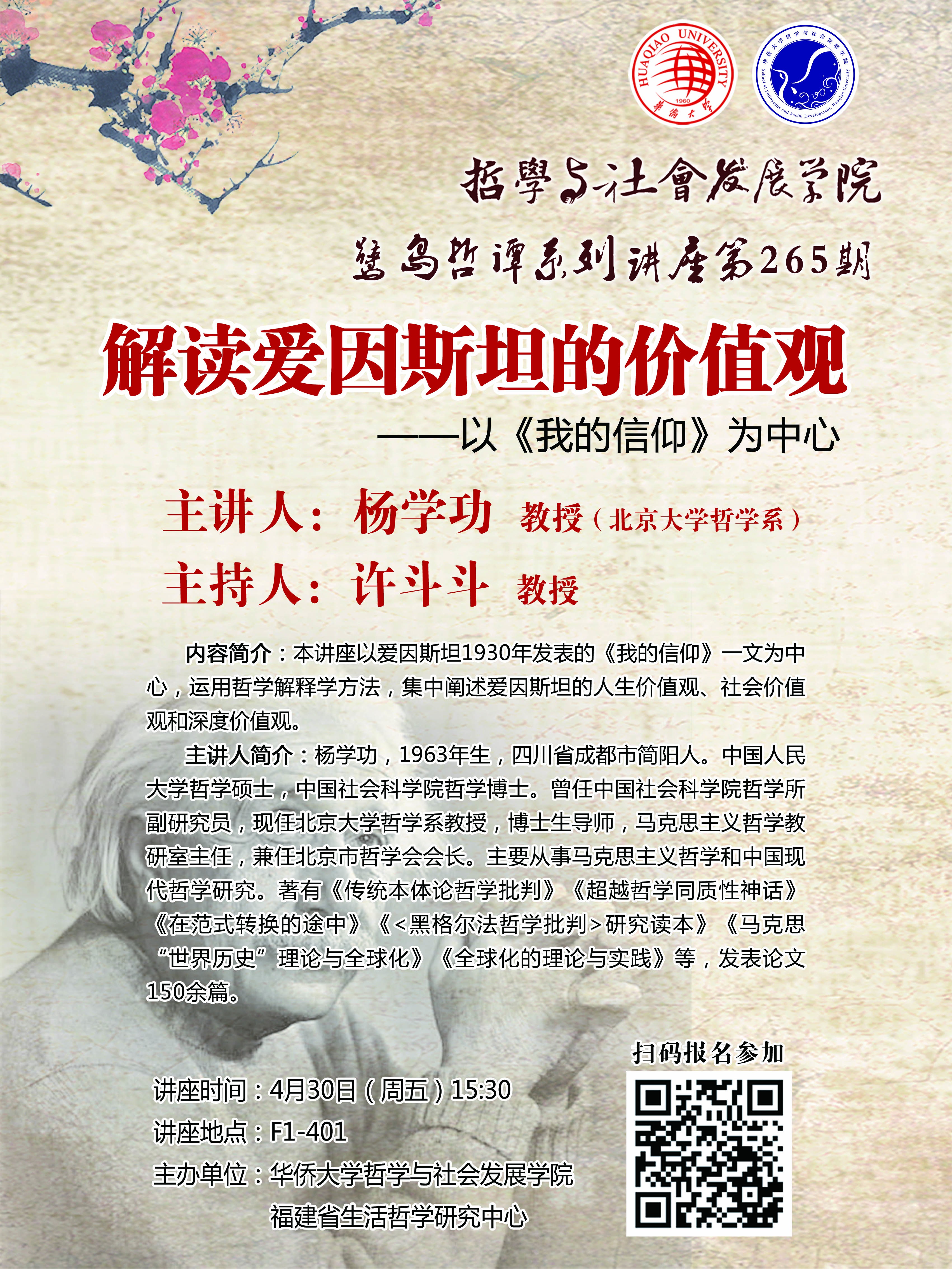 【讲座预告】哲社学院鹭岛哲谭系列讲座第265期之解读爱因斯坦的价值观