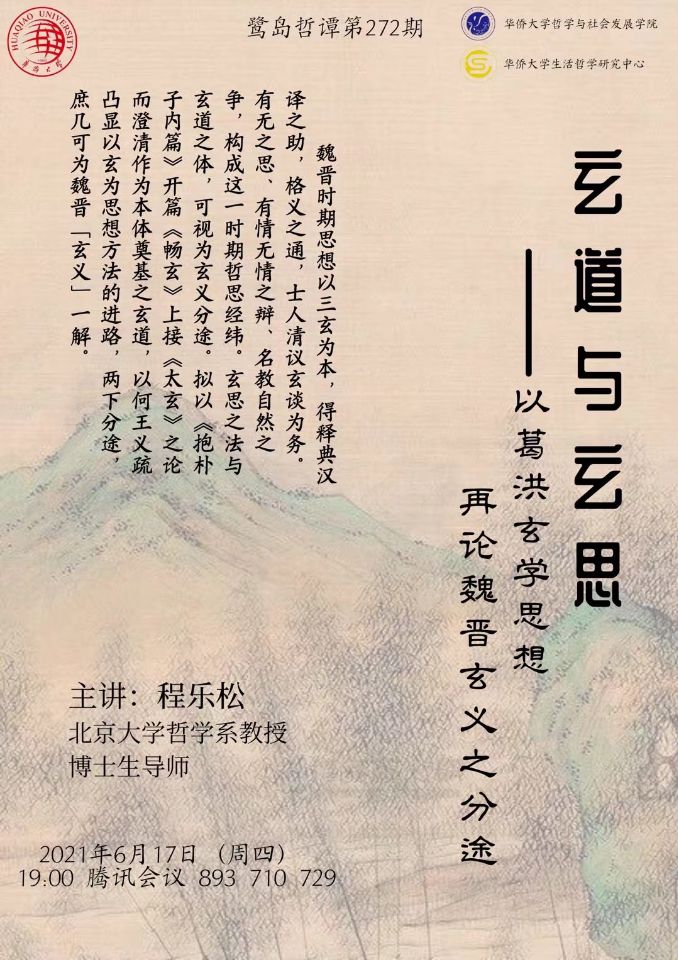 【讲座预告】鹭岛哲谭第272期之程乐松教授主讲玄道与玄思