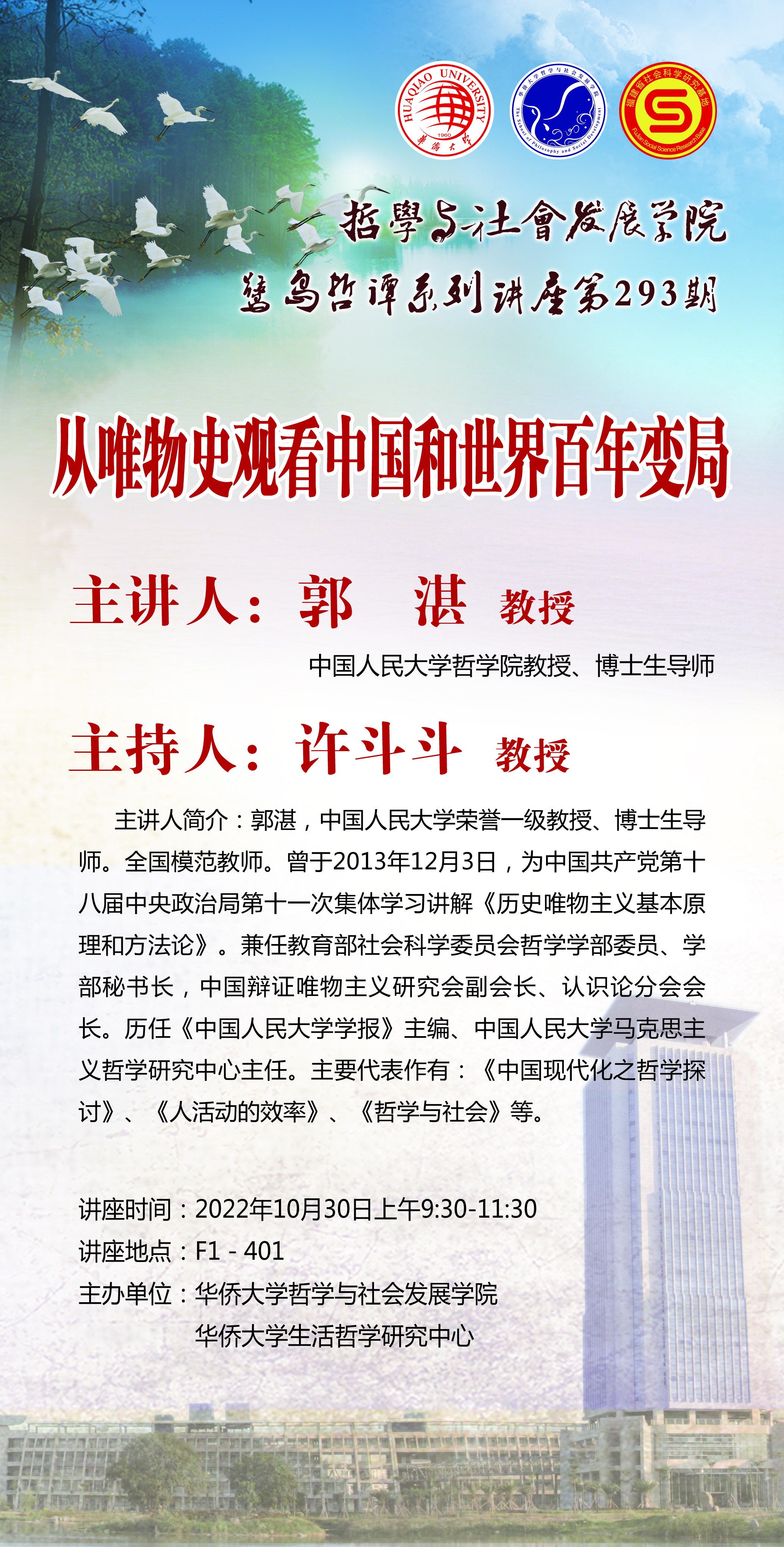 【讲座预告】哲社学院鹭岛哲谭系列讲座第293期:从唯物史观看中国和世界百年变局