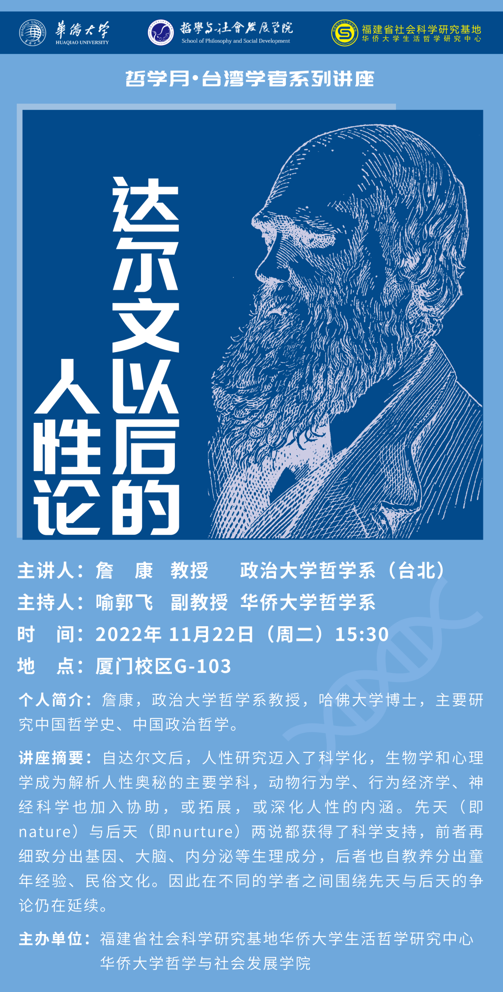 【讲座预告】哲学月·台湾学者系列讲座之达尔文以后的人性论