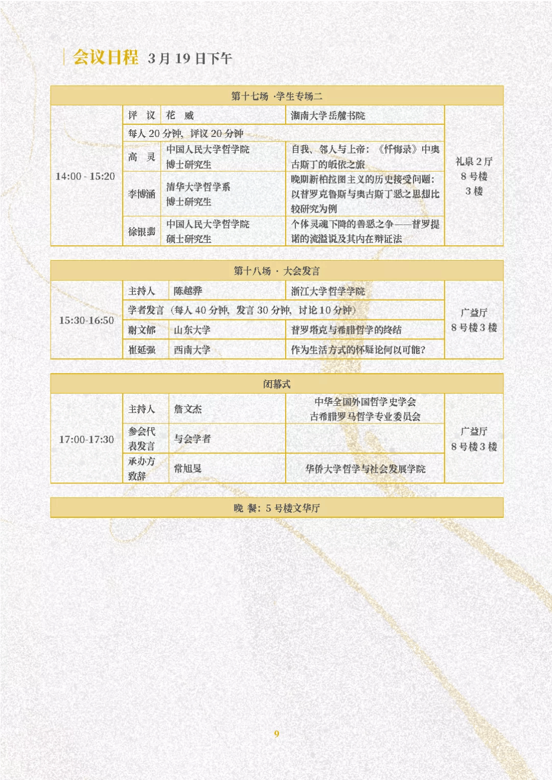会议议程|第六届全国古希腊罗马哲学研讨会“古代哲学:过去和未来”
