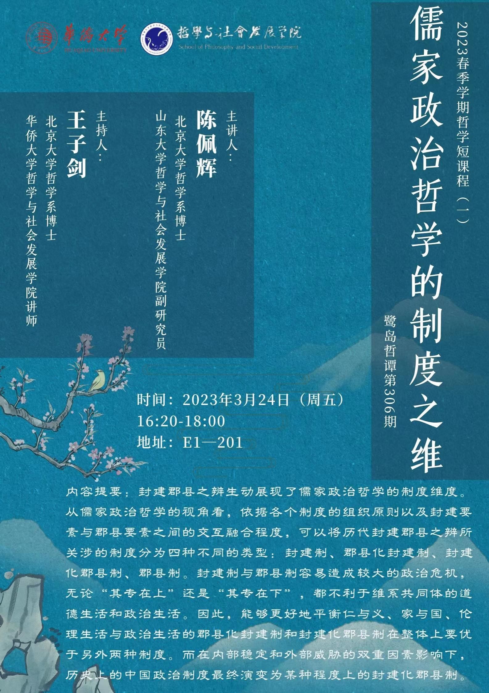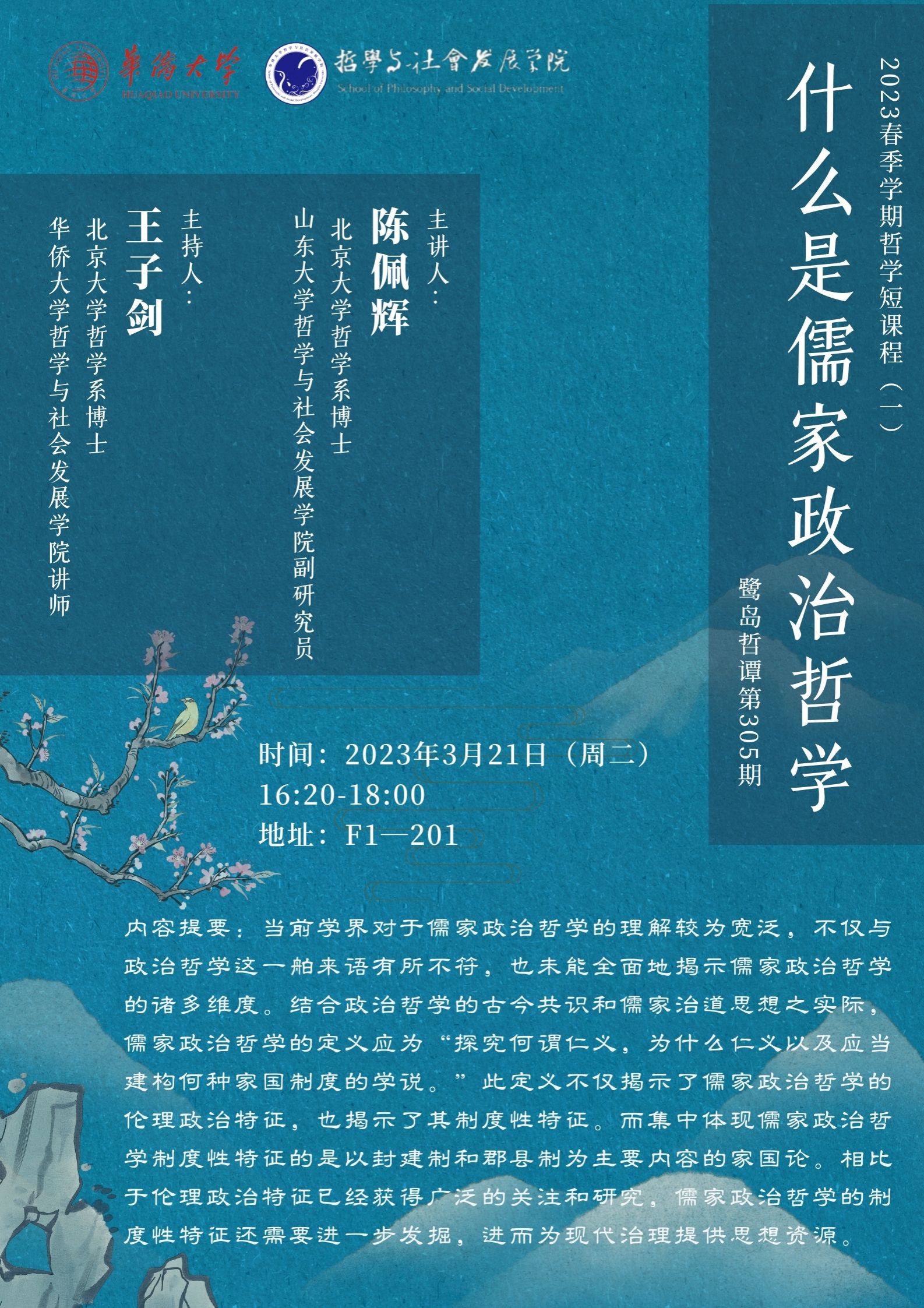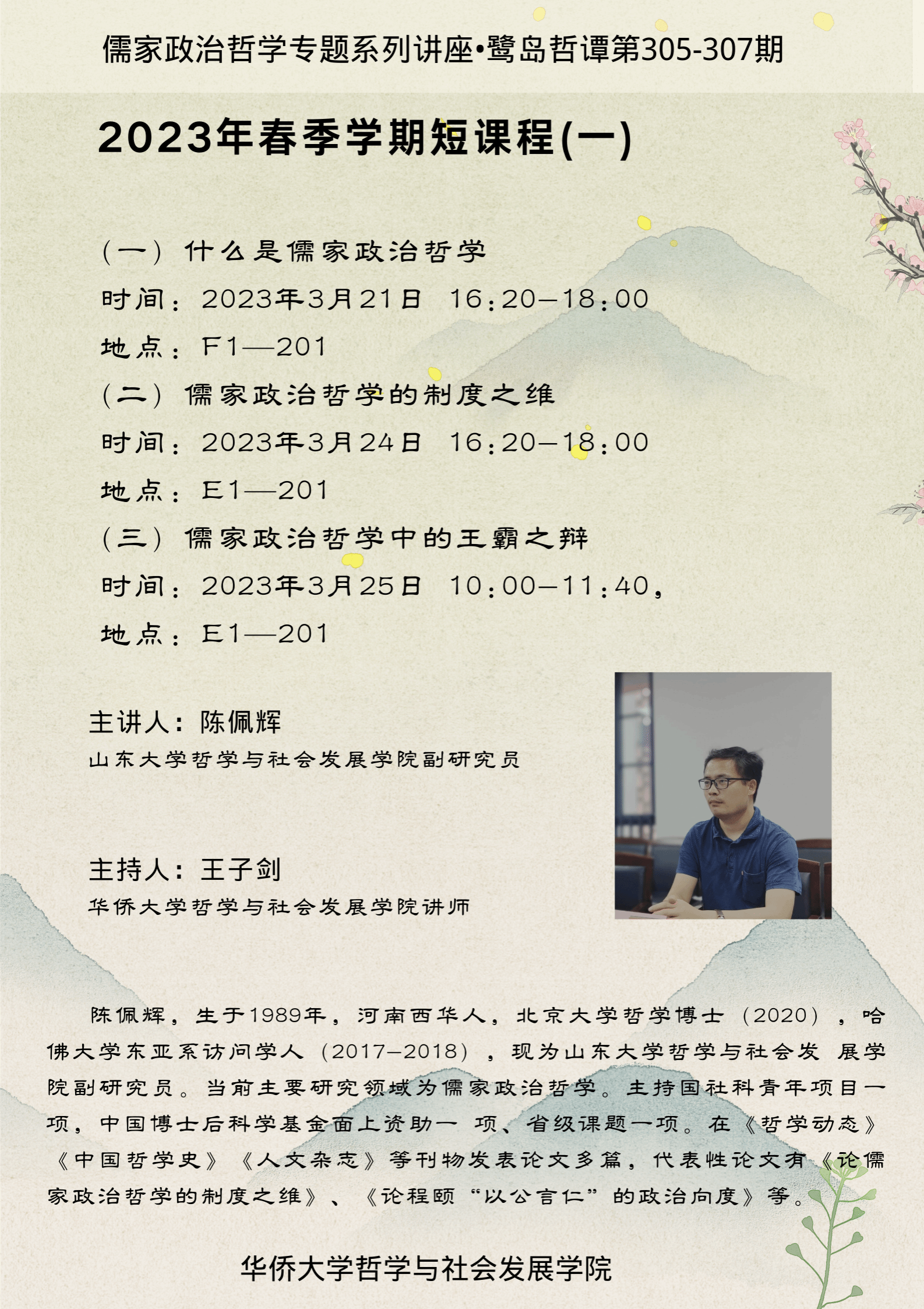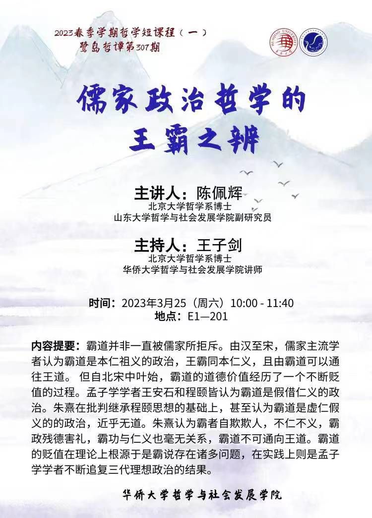 【讲座预告】哲社学院鹭岛哲谭系列讲座第305-307期之儒家政治哲学专题系列讲座